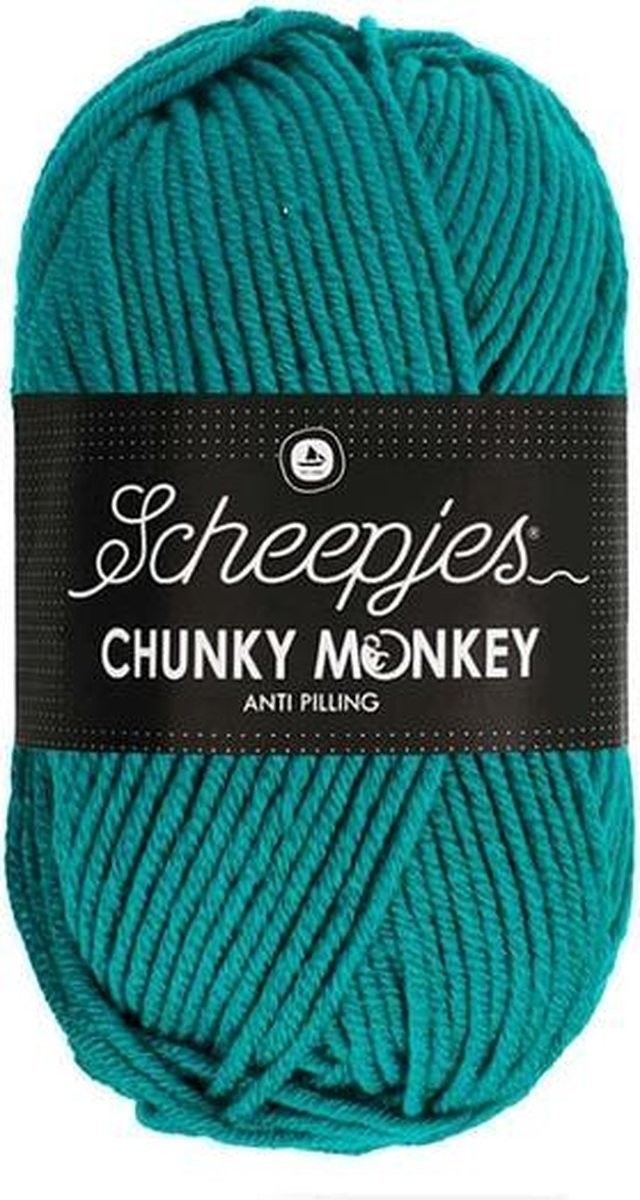 De aanbevolen naalddikte 5.00mm. Een bol Scheepjes Chunky Monkey weegt 100 gram en heeft een looplengte van 116 meter (garendikte Aran). Dit assortiment bestaat uit 93 kleuren.