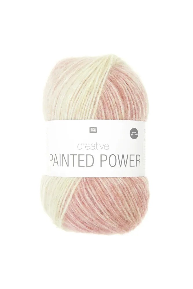 Met Creative Painted Power zegt de naam het al. De print, bestaande uit onregelmatige, verweven strepen, is kleurrijk en lijkt geschilderd. De print verandert van uiterlijk afhankelijk van de breedte van het breiwerk. Het garen is licht rekbaar en heeft, ondanks de lichte pluizigheid, een geweldige draadkwaliteit die supergemakkelijk te verwerken is en een prachtig, gelijkmatig stekenpatroon creëert.