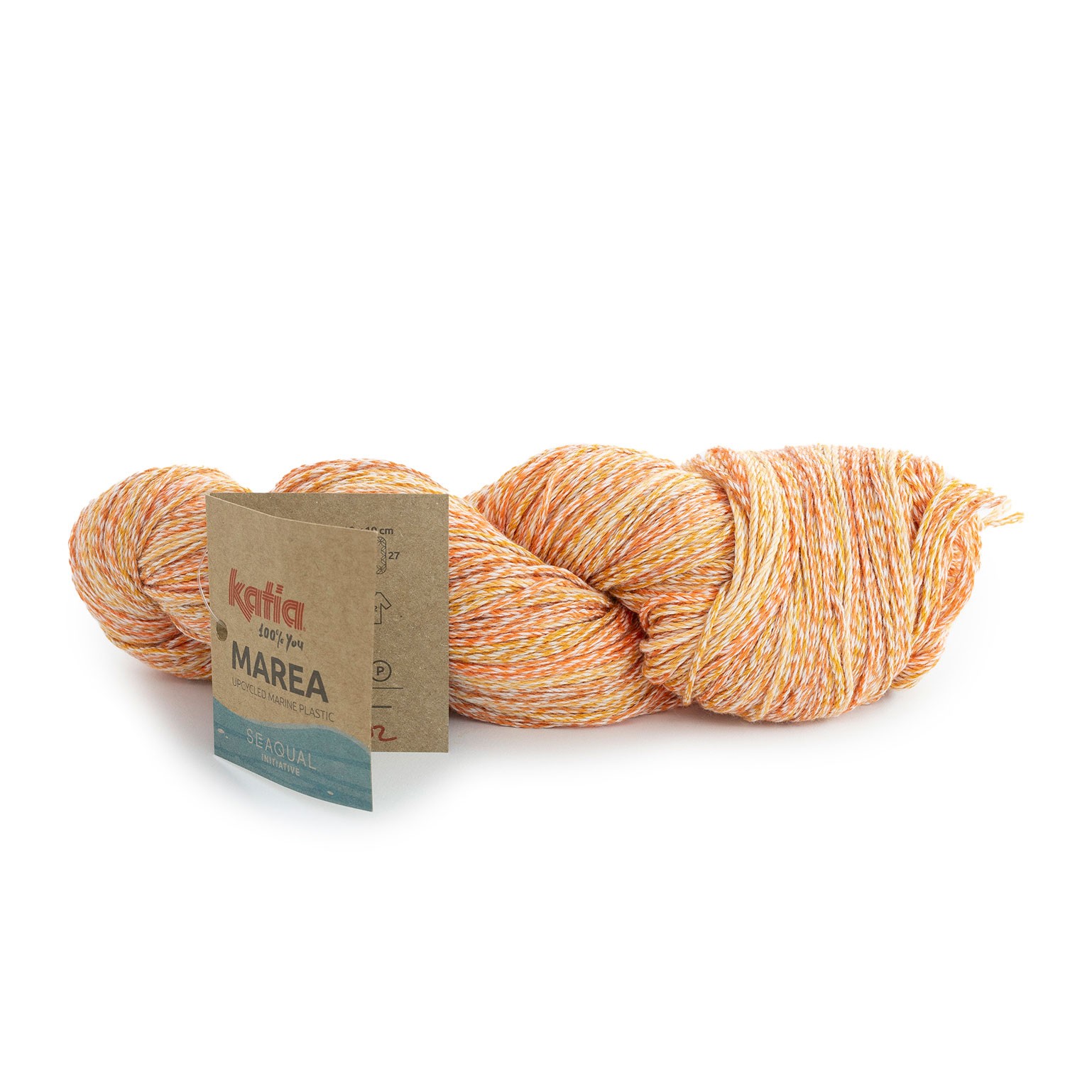 Brei bewust en stijlvol met Katia Marea, een garen gemaakt van gerecycled katoen en polyester dat het indrukwekkende werk steunt van het Seaqual-initiatief om de oceanen schoon te maken. Katia Marea garen biedt een delicaat ton-sur-ton patroon in levendige zomerkleuren met een charmant gemêleerd effect. Het is verkrijgbaar in limited edition strengen van 100 g en is de perfecte keuze voor het breien van lichtgewicht en duurzame kledingstukken zoals topjes en jasjes. Brei voor de planeet en geef betekenis aan je projecten met Katia Marea!