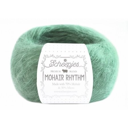 Scheepjes Mohair Rhythm is gemaakt van 70% Mohair en 30% Micro en is herkenbaar aan de subtiele zijdeglans. Mohair Rhythm is verkrijgbaar in een ruim kleurenpalet van 20 sprekende kleuren, waardoor de draden zich perfect laten combineren. Ook combinaties met andere garens, zoals Linen Soft en Catona geven een prachtig effect. Naast het alom bekende Bernadette vest is de Mohair Rhythm, net als de Alpaca Rhythm, ook zeer geschikt voor het haken en breien van prachtige omslagdoeken, en eveneens voor het kanthaken en -breien.
