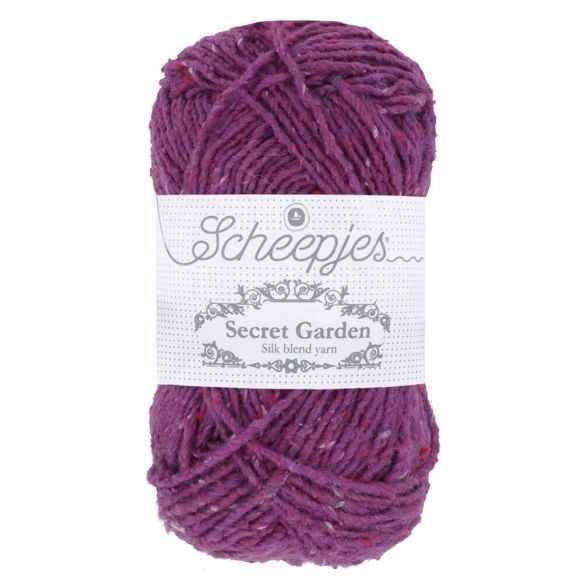 Ontdek Scheepjes Secret Garden, een zijdezacht garen met een markant uiterlijk. Dit garen is gemaakt van 20% zijde, 20% katoen en 60% polyester en is verkrijgbaar in een palet van betoverend mooie unikleuren en gemêleerde tinten. Scheepjes Secret Garden combineert de prachtige textuur van de natuurlijke zijdevezel met de zachtheid en ademende kwaliteit van katoen en de duurzaamheid van polyester. Dit garen is geschikt voor uiteenlopende brei- of haakprojecten, zoals kleding, modeaccessoires of woonaccessoires. De aanbevolen naalddikte is 4.00mm. Een bol Scheepjes Secret Garden weegt 50 gram en heeft een looplengte van 93 meter (garendikte DK).