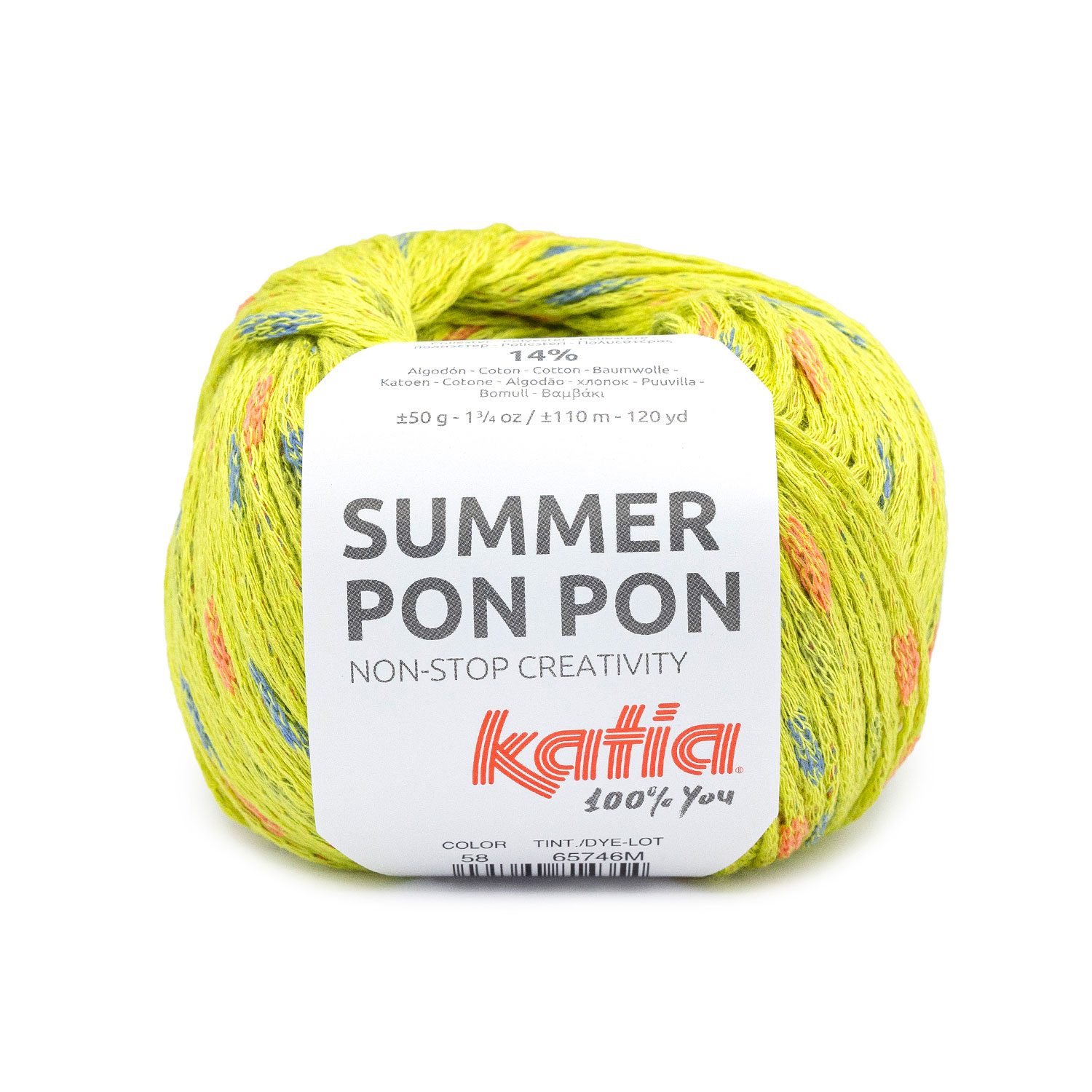 Summer Pon Pon is een lichtgewicht garen dat speciaal is ontworpen voor zomerse brei- en haakprojecten. Dit garen staat bekend om zijn vrolijke en kleurrijke pomponnetjes die het een speelse uitstrali...