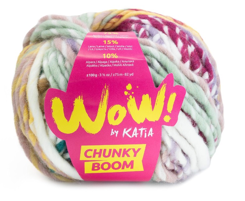 Bereid je voor op een explosie van kleur met WOW! Chunky Boom! Dit garen is de perfecte keuze voor liefhebbers van extravagante en levendige modetrends die willen leren breien. Maak unieke stukken om op te vallen bij elke gelegenheid. Combineer dit dikke garen dat snel en gemakekelijk weg breidt met de effen kleuren van WOW! Chunky. Maak allerlei felle en leuke accessoires of juist moderne oversized kledingstukken voor de dappersten. Laat je creativiteit de vrije loop en brei in jouw eigen stijl!