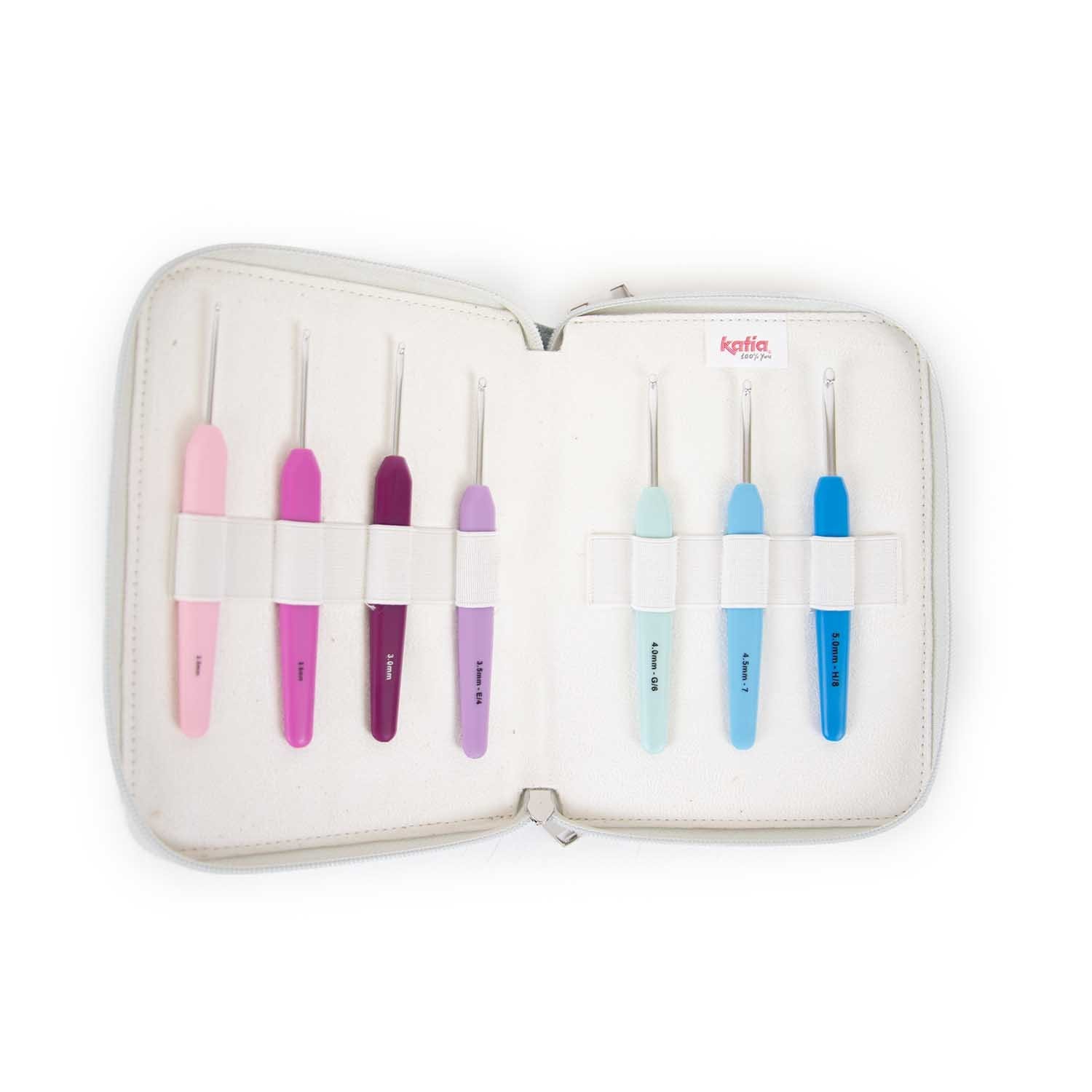 De etui met 14 haaknaalden van 2 mm tot 12 mm is de perfecte set voor elke haakliefhebber. Elke haaknaald is kleurgecodeerd in een zachte pastelkleurenpalet, ideaal om een vleugje stijl toe te voegen ...