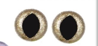 Geef zelfgemaakte kattenbeesten, knuffels en amigurumi een eigen karakter met deze sprankelende kattenogen. De ronde ogen hebben een ellipsvormige, zwarte pupil en een gekleurde iris; achter het oog ligt een glitterschijfje dat het oog zijn vrolijke sprankeling geeft. De veiligheidsogen worden bevestigd door de schroefdraad aan de achterkant door de stof of het breisel te steken en aan de binnenkant met een sluitring vast te zetten.