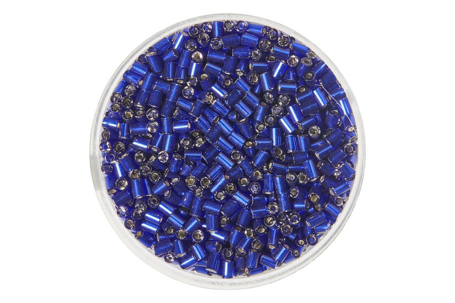 Glazen staafkralen 2mm met zilveren kern, d.blauw