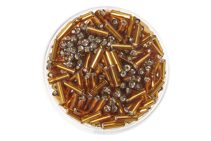Glazen staafkralen 6mm met zilveren kern, l.bruin