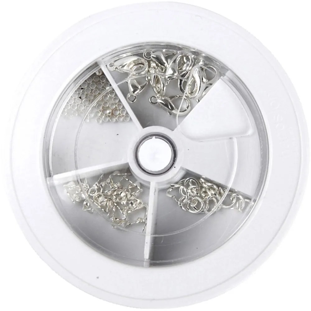 De set bevat allerlei sieradenaccessoires die u nodig hebt voor het bevestigen en sluiten van jasserons met sieradendraad of leerkoord.