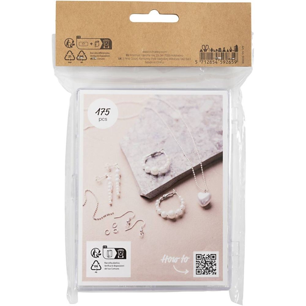 Inhoud: Franse oorbelhaken, oorstekers, oorringen, nietstiften met en zonder oog, O-ringen en jasseron.