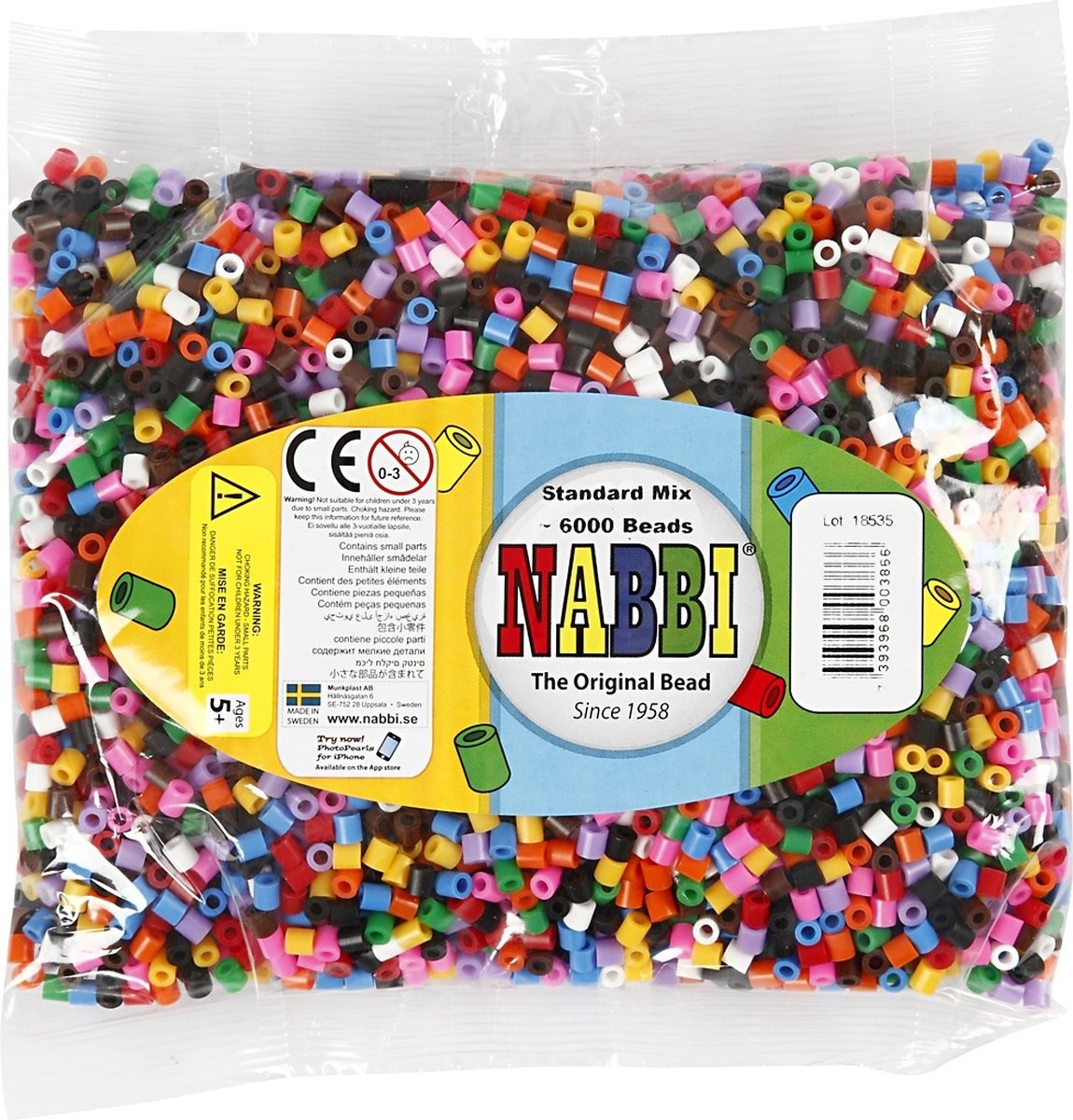 Strijkparels, afm 5x5 mm, gatgrootte 2,5 mm, standaardkleuren, medium, 6000assorti