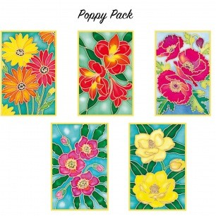 5 Voorgedrukte Wenskaarten Zijdeschilderen Poppy
