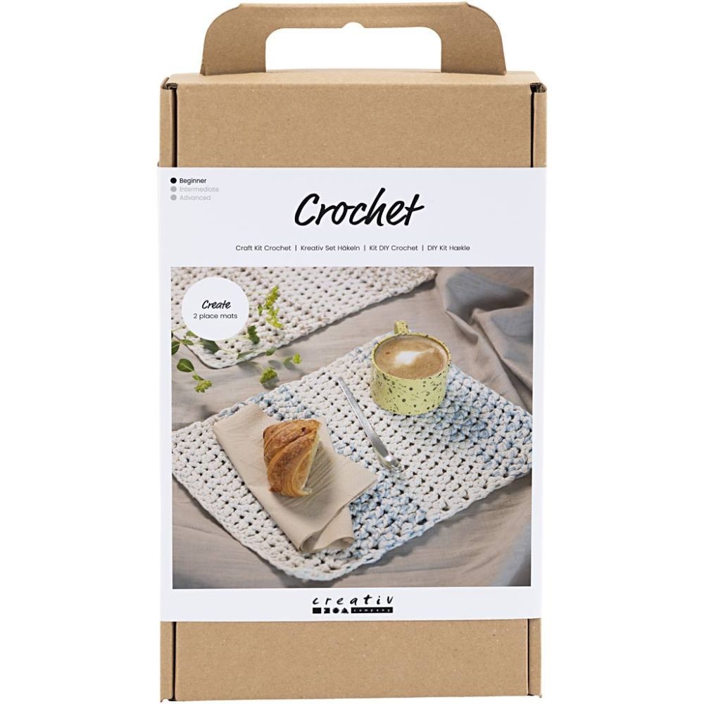 Als u uw tafeldecoratie een gezellige touch wilt geven, is dit een ideale set. Met de set haakt u hartveroverende placemats – zowel grof als zacht – die supermakkelijk te maken zijn. U haakt met slechts drie verschillende steken en omdat u zowel dik draad als een grote haaknaald gebruikt. Daardoor boekt u snel vorderingen met dit eenvoudige haakwerk. Voor de finishing touch kunt u ook gekleurd garen toevoegen om de placemats een mooi gestreept dessin te geven.