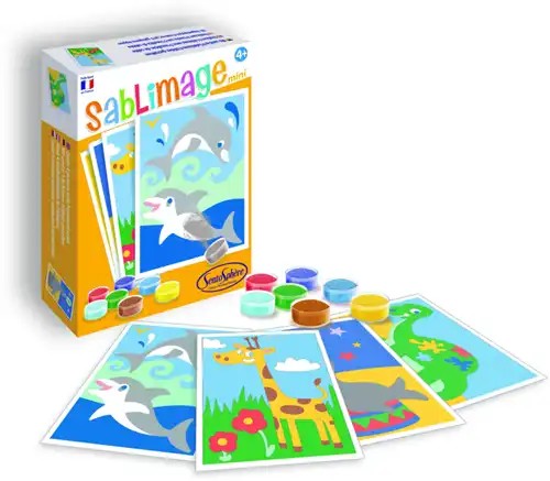 Mini Exotisch Dieren is een compacte zandkunstset waarmee kinderen kleurrijke mini-kunstwerken kunnen maken van exotische dieren. Door gekleurd zand op zelfklevende illustratievellen te strooien ontst...