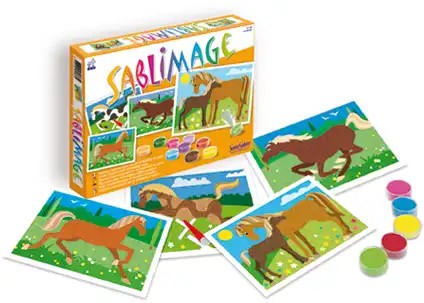 Sablimage Zandtekeningen Set Paarden maken kinderen stap voor stap prachtige zandkunstwerken met elegante en krachtige paardenillustraties. Dankzij de zelfklevende afbeeldingen is knutselen eenvoudig ...