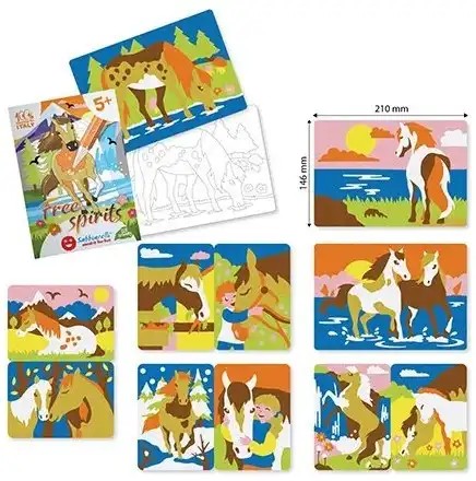 Met de Sabbiarelli Zandschilderen Set Free Spirits maken kinderen schitterende zandschilderijen met kleurrijk, glanzend Carrara-marmerzand. Dankzij de zelfklevende illustraties zijn verf en lijm overbodig: kinderen verwijderen eenvoudig de beschermlaagjes en vullen de vlakken met gekleurd zand. Zo ontstaan stap voor stap fantasierijke kunstwerken met een prachtig sprankelend effect. Deze creatieve set stimuleert fijne motoriek, concentratie en creativiteit en zorgt voor een rustgevende en plezierige knutselervaring.