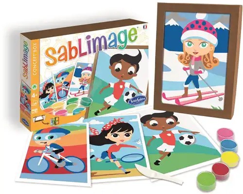 Zandtekeningen Set Sport maken kinderen dynamische en kleurrijke zandkunstwerken met sportieve illustraties. Dankzij de zelfklevende sjablonen is knutselen eenvoudig en schoon: het gekleurde zand word...