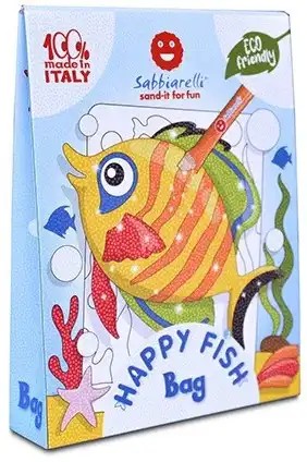 Zandschilderen Tas Blije Vis kunnen kinderen op een creatieve manier hun eigen tas versieren met vrolijke vissen-zandkunst. De tas is voorzien van zelfklevende vakken waarop stukje voor stukje gekleur...