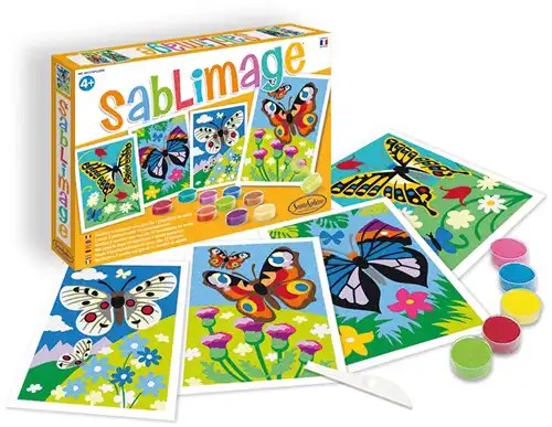 Zandtekeningen Set Vlinders ontdekken kinderen de kleurrijke wereld van vlinders terwijl ze prachtige zandkunstwerken maken. De zelfklevende sjablonen maken het eenvoudig om het gekleurde zand op de j...