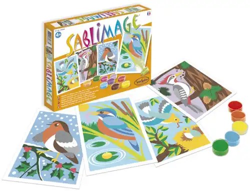 Zandtekeningen Set Vogels maken kinderen kleurrijke zandkunstwerken met prachtige vogelillustraties. Dankzij de zelfklevende sjablonen kunnen ze het gekleurde zand eenvoudig aanbrengen zonder lijm te ...