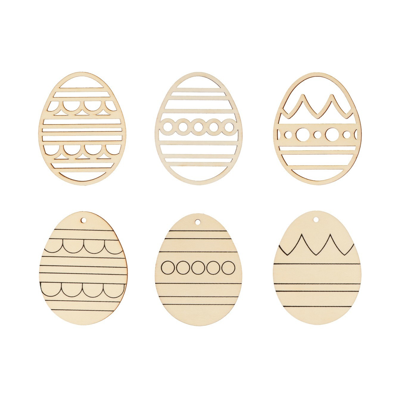 De Artemio eier set bevat 6 houten silhouetten waarmee u 3 reliëfeieren kunt maken.