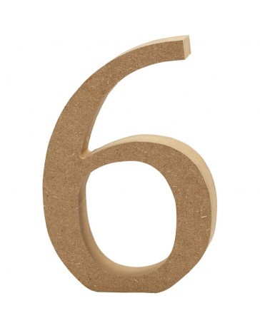Cijfer, 6, h: 13 cm, dikte 2 cm, MDF, 1stuk