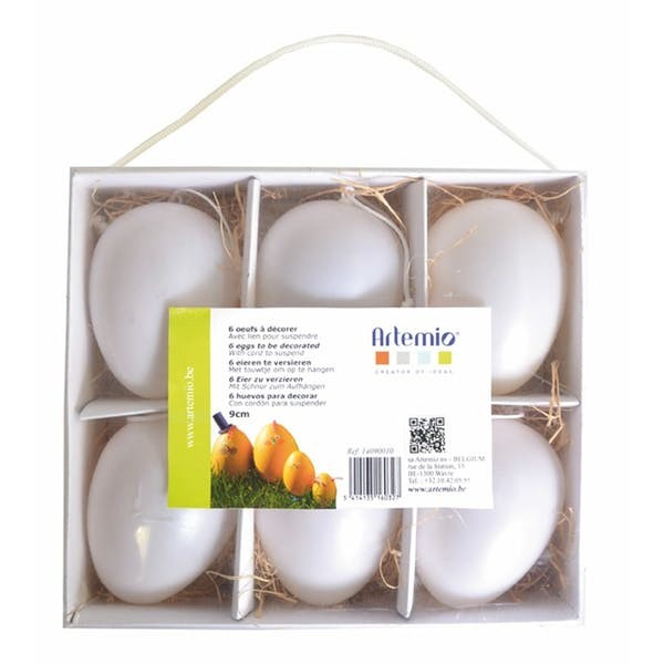 Plastic eieren om te versieren Afmeting: 9cm Verpakt per 6 stuks
