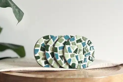 De houten onderzetters hebben een diameter van 9 cm en zijn ideaal voor kopjes, glazen of kleine kommetjes. Dankzij de mozaïekafwerking krijgen ze een stijlvolle, persoonlijke uitstraling die past bij jouw interieur.
