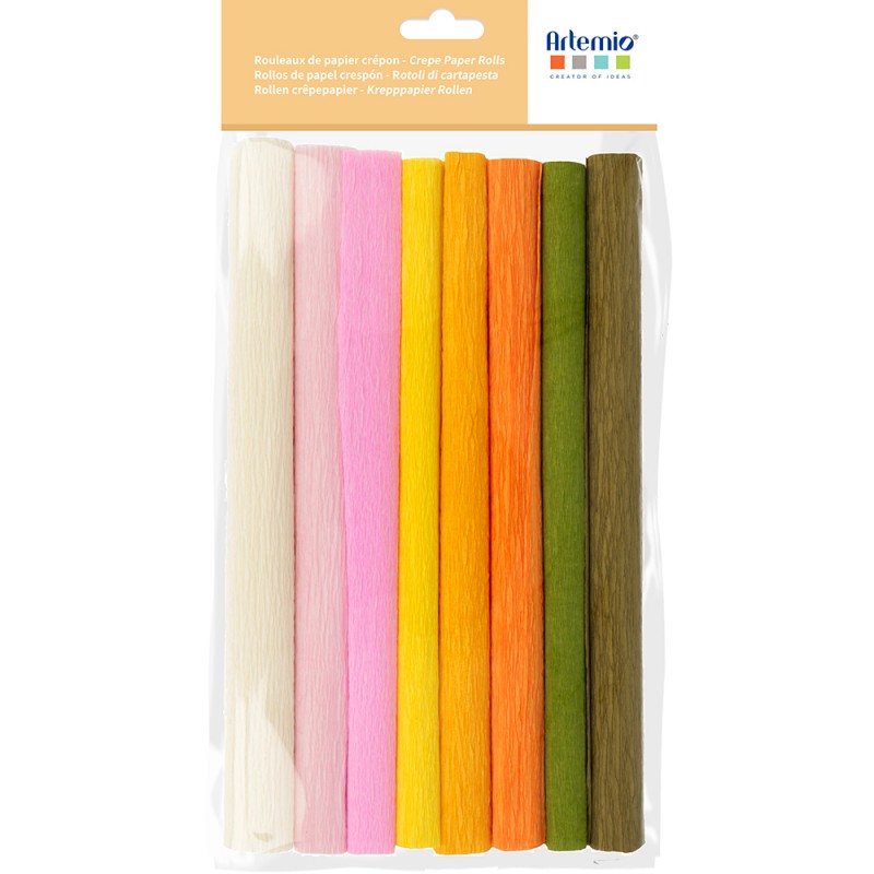 8st Crepepapier Wit Roze Oranje Geel Groen