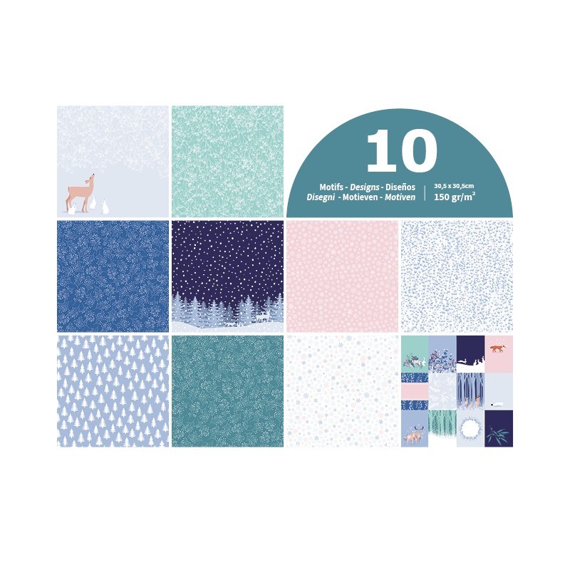 Het Artemio Enchanted Winter Paper Pad bevat 10 vellen. De platen hebben een afmeting van 30x30 cm en een gewicht van 150 gr/m2.