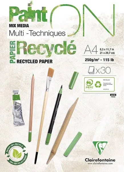 Paint'On Mix Media Multi-Techniques Recyclé van Clairefontaine is een veelzijdig papier dat geschikt is voor verschillende artistieke technieken. Gemaakt van gerecycled materiaal, biedt dit papier een milieubewuste optie voor kunstenaars. Met een geschikte textuur en gewicht is het ideaal voor gebruik met aquarelverf, acrylverf, inkt, potlood en meer. Verkrijgbaar in diverse formaten, biedt dit papier creatieve mogelijkheden voor allerlei projecten, van tekeningen tot schilderijen.
