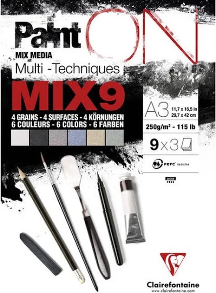 PaintOn MIX9 van Clairefontaine is een innovatief tekenblok ontworpen voor diverse artistieke projecten. Dit blok bevat 9 verschillende soorten papier, elk met 4 verschillende oppervlakken en in 6 ver...