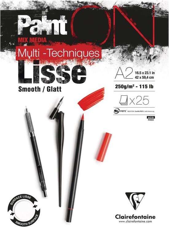 PaintOn Wit Glad Tekenblok van Clairefontaine biedt een hoogwaardige canvas voor jouw artistieke expressie. Met een glad oppervlak en een gewicht van 250 gram per vierkante meter is dit tekenblok idea...