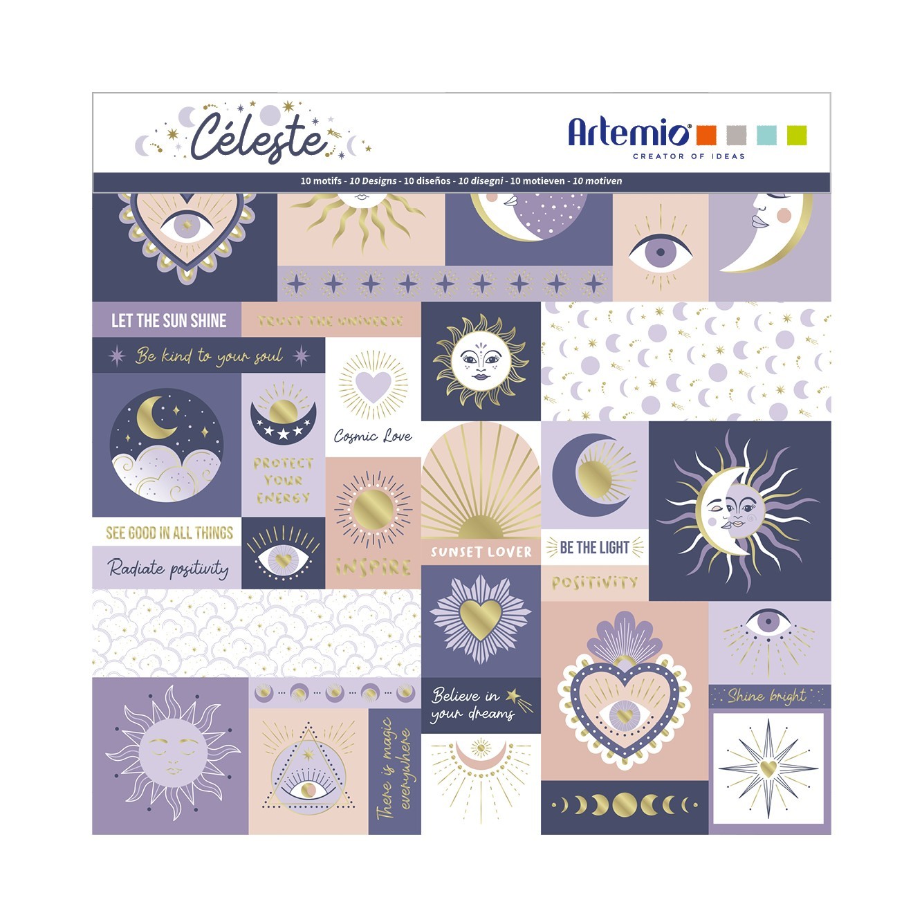De papierset céleste van Artemio bevat 10 vellen met goudfolie-effect