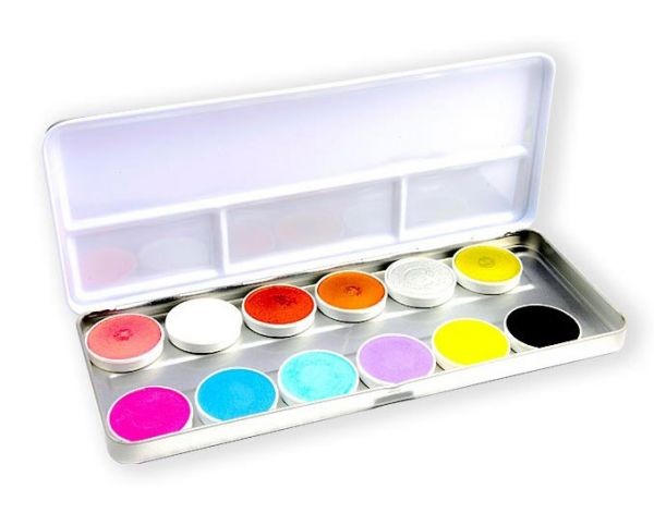 Aqua Face- and Bodypaint palette 12 colours metalic