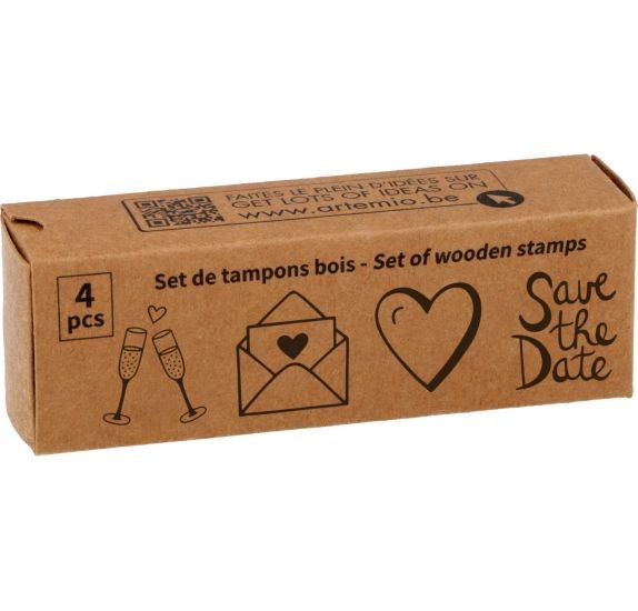 De set Trouw van Artemio bevat 4 houten stempels van 2x2 cm.