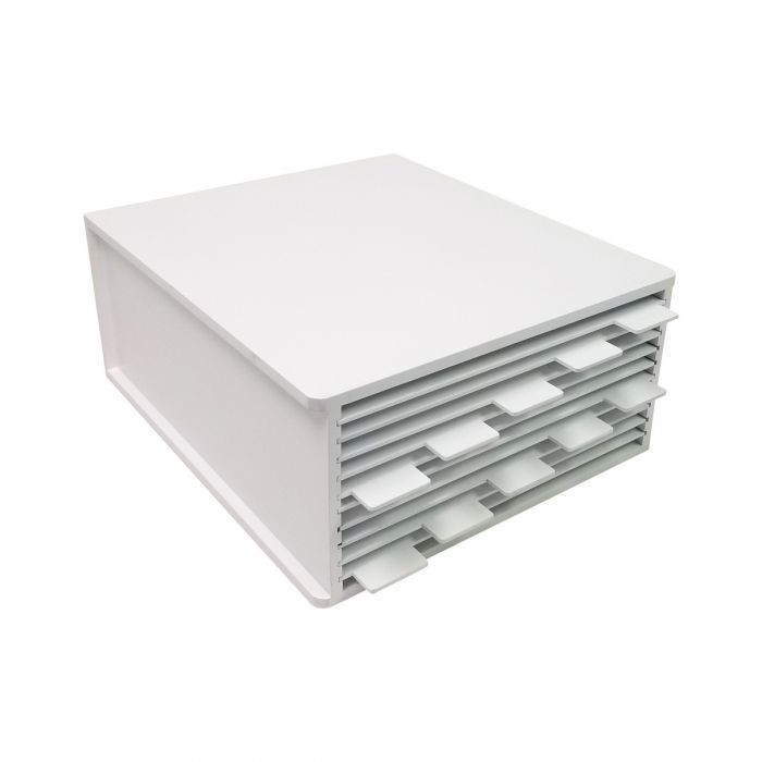 Je kunt het geheel horizontaal of vertikaal stockeren. En het past in vele kubus-meubilair zoals de IKEA Kallax en Expedit.