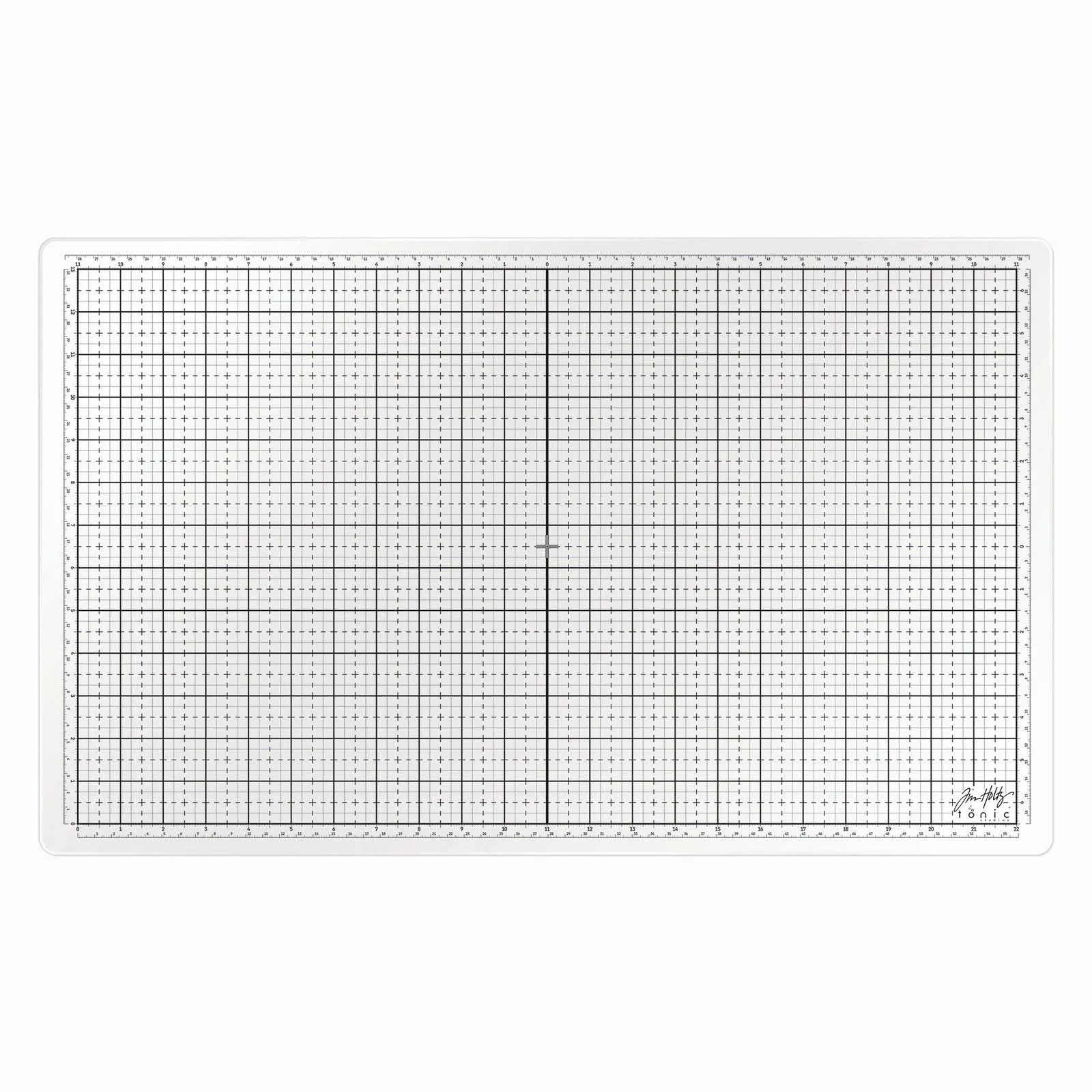 Measuring at 14.25” x 23.75” with a sleek white finish, the Tim Holtz®Glass Studio Mat is a new surface option for your creative space. The Glass Studio Mat features an impressive 13” x 22” measuring grid area with both imperial and metric measurements