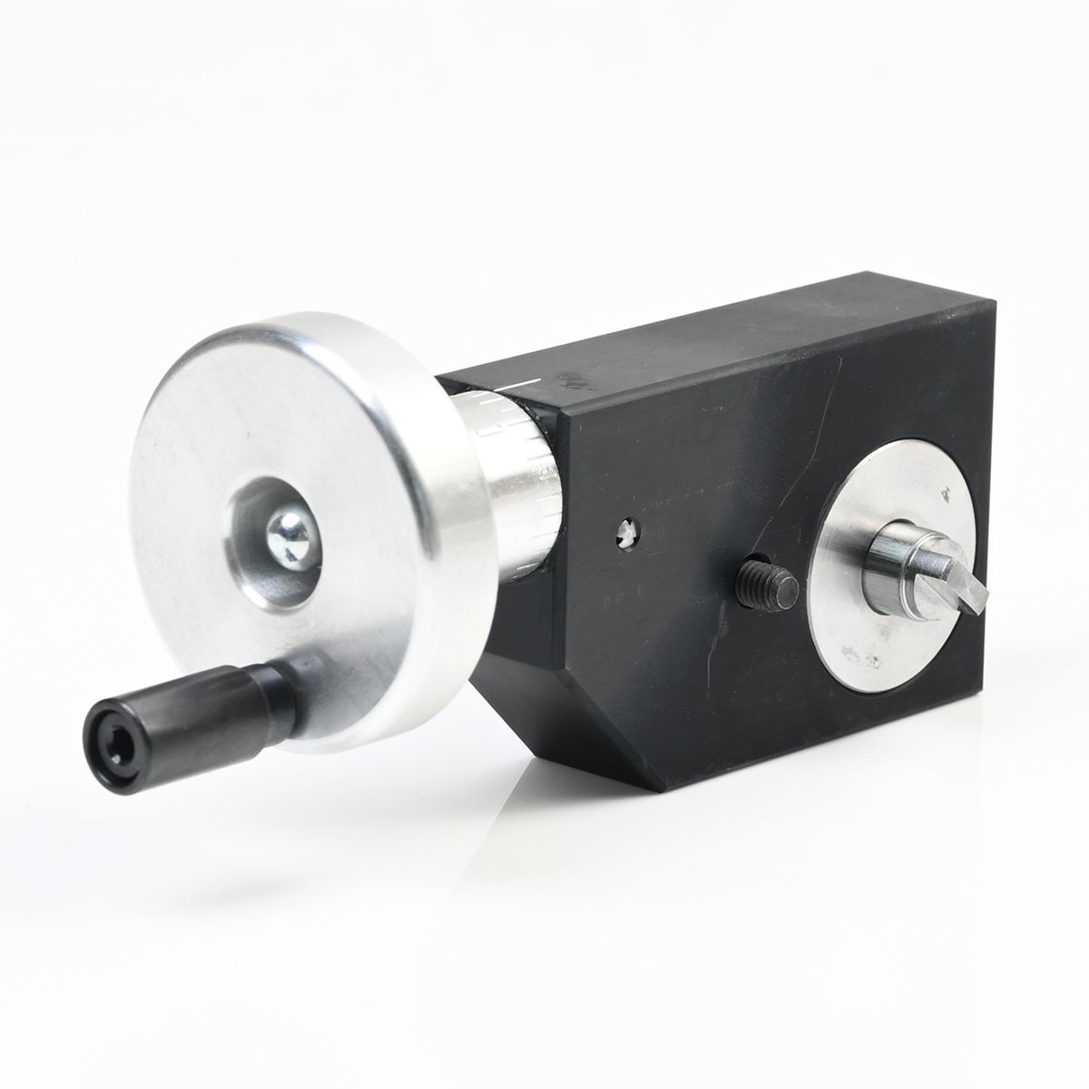 Montage in een oogwenk. Het voer staat óf verticaal door de hoogte te verstellen, óf schuin door het fijnvoer. Met schaalverdeling (herpositioneerbaar naar 0). Eén omwenteling komt overeen met 1,5 mm spilvoeding (1 schaalverdeling = 0,05 mm).