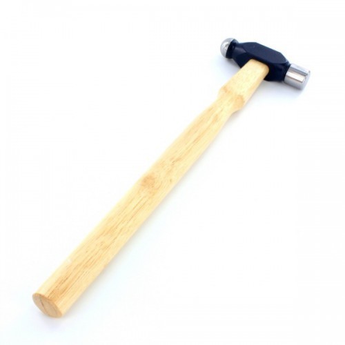 Een verkleinde miniatuurversie van de traditionele kogelhamer. Gebruikt voor het vormgeven van metalen klinken, enz. Lengte 245 mm.