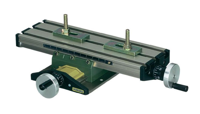Drie doorgaande T-schroeven (MICROMOT-norm 12 x 6 x 5 mm). Verschuifbare liniaal voor eenvoudig instellen van de dwarsslede. Handwielen met op nul instelbare schaalring: 1 omwenteling = 1.0 mm, 1 deelstraap = 0.05 voeding. Inclusief de afgebeelde spanklauwen en bevestigingsonderdelen voor MB 140/S alsmede TBM 220.