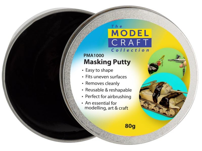 Herbruikbare maskeerplamuur is ontworpen om gemakkelijk te worden verwijderd zonder de geverfde gebieden te beschadigen. Deze veelzijdige putty kan worden gerold, gesneden en gevormd voor elke taak, perfect voor het maken van zowel harde als zachte randen bij het airbrushen en het maken van camouflagepatronen.