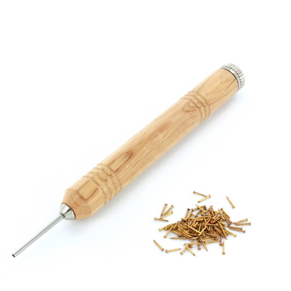 De pin pusher in zakformaat met houten handvat van hoge kwaliteit is ideaal voor het plaatsen van miniatuur n-spoorrails aan boord of voor spijkerwerkzaamheden aan houten bootmodellen, poppenhuizen en fotolijsten. Kan pinnen in 9 mm multiplex duwen. Pinnen beschikbaar; Zwart PPU8174PB X 100 of messing PPU8174PG X 100.