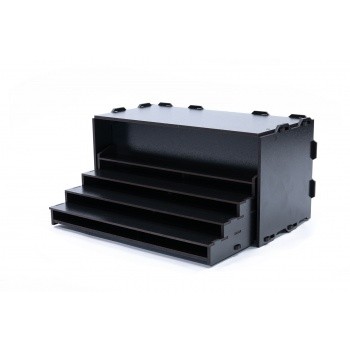 Het Black Rack System van Kraken Wargames is dé manier om je werkruimte te organiseren. Dankzij het innovatieve plug-in systeem kun je het Black Rack eindeloos aanpassen en uitbreiden. Er zijn geen lijm, schroeven of spijkers nodig om de modules te monteren. De zwarte lakafwerking geeft het Black Rack een tijdloze en elegante uitstraling.