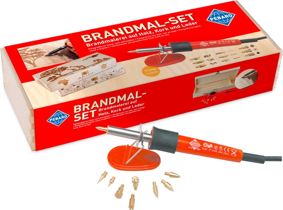 Pebaro Houtbranderset in Houten Kist 9 Opzetstukke