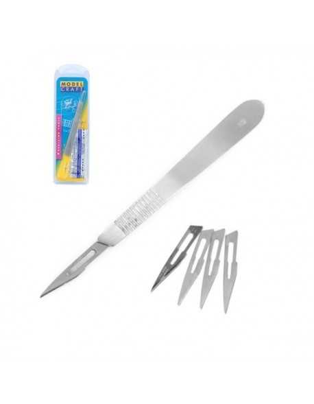 Model Craft Scalpel set (5x mesjes), deze set bevat een scalpel met 5 reserve mesjes. Het roestvrijstalen scalpel kan ook gebruikt worden door andere mesjes en is daardoor een veelzijdig gereedschap.