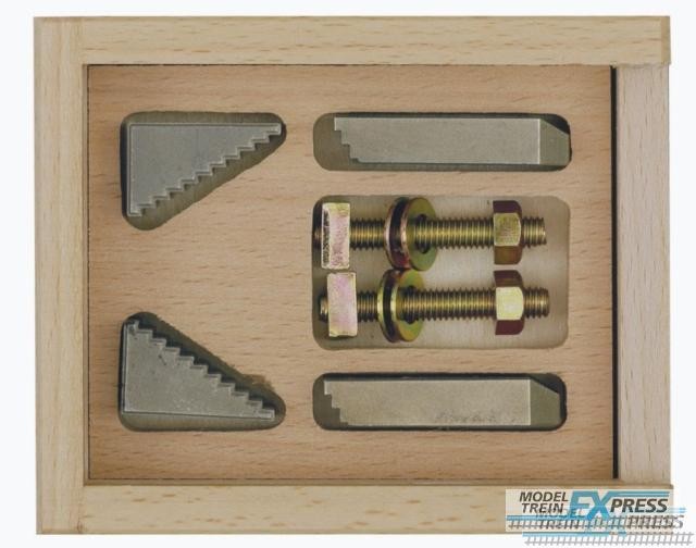 Met schuifregelaars en bijbehorende schroeven voor T-gleuven voor de MICROMOT-standaard (12 x 6 x 5 mm). In een houten kistje met schuifdeksel.