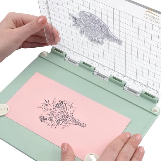 De ondergrond van de Stamp Easy+ is volledig magnetisch en heeft een antislip oppervlak. Zo weet je zeker dat het platform stevig op zijn plek blijft tijdens het stempelen. Met de twee bijgeleverde magneten kun je je papier of cardstock bevestigen op het onderbord. Op zowel de transparante stempelplaat als de magnetische ondergrond is de papieruitlijning aangegeven in cm en inches. De Stamp Easy+ stempelhulp is heel geschikt om te gebruiken bij knutselen met papier zoals kaarten maken en het versieren van een bullet journal of scrapbook.