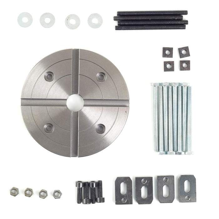 Wordt gemonteerd in plaats van de spantang. Ideaal voor het spannen van grote, asymmetrische onderdelen. Doorsnede 125 mm. Gekruist door 2 doorlopende T-vormige groeven. Inclusief klemmen.