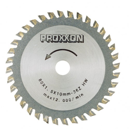 Ø 80 x 1,6 x 10 mm, 36 tanden. Balsa, multiplex, zacht en hard hout, polycarbonaat, kunststof, non-ferrometalen, glasvezeldekken.