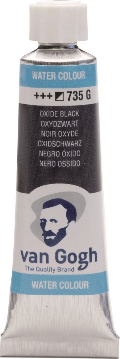 Nieuwe kleur voor 2019! Van Gogh aquarelverf wordt geclassificeerd als een assortiment voor studenten en kunstenaars. De kleuren zijn briljant, transparant en intens en de verf heeft een hoge kleurkracht. Dankzij de zuiverheid en uniforme viscositeit is al deze aquarelverf gemakkelijk om mee te werken en te mixen. Met gepaste trots en strikte kwaliteitscontroles geproduceerd in Nederland, zodat je met iedere aankoop gegarandeerd dezelfde ervaring hebt. Deze tube van 10 ml met Oxydzwart 735 is samengesteld met PBk11-pigment(en), is halfdekkend en heeft een lichtechtheidsgraad van +++ (minimaal 100 jaar lichtecht onder museumomstandigheden).